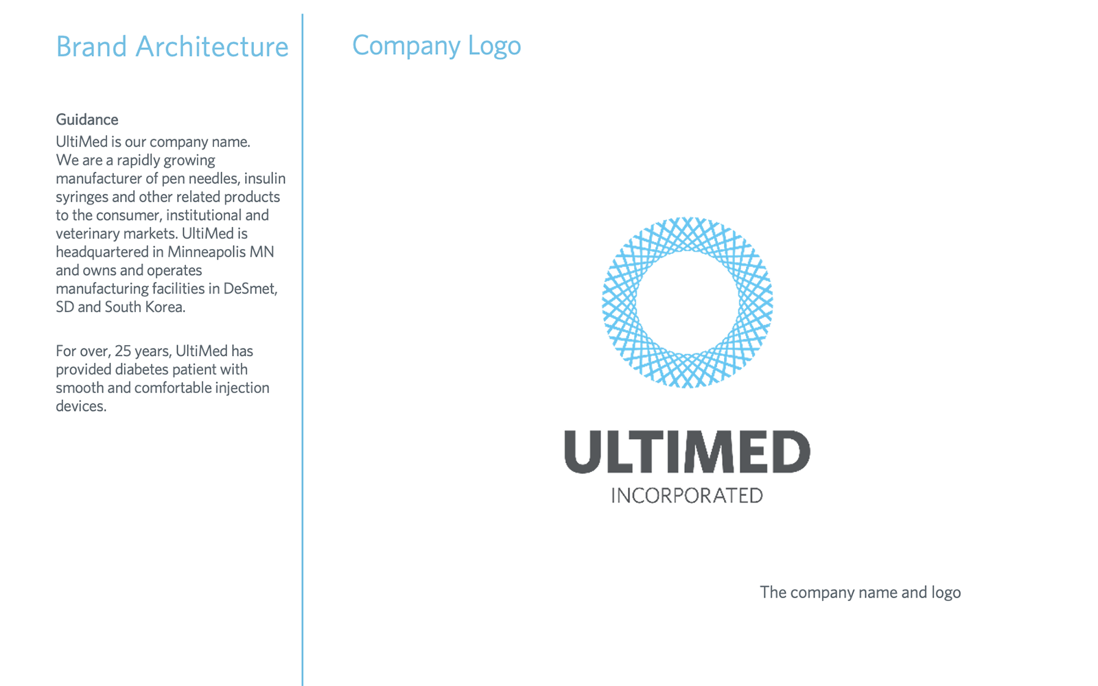 The strategic need: a modern corporate identity that could anchor a house of brands, support PE due diligence, and signal UltiMed's evolution into a sophisticated healthcare manufacturer.