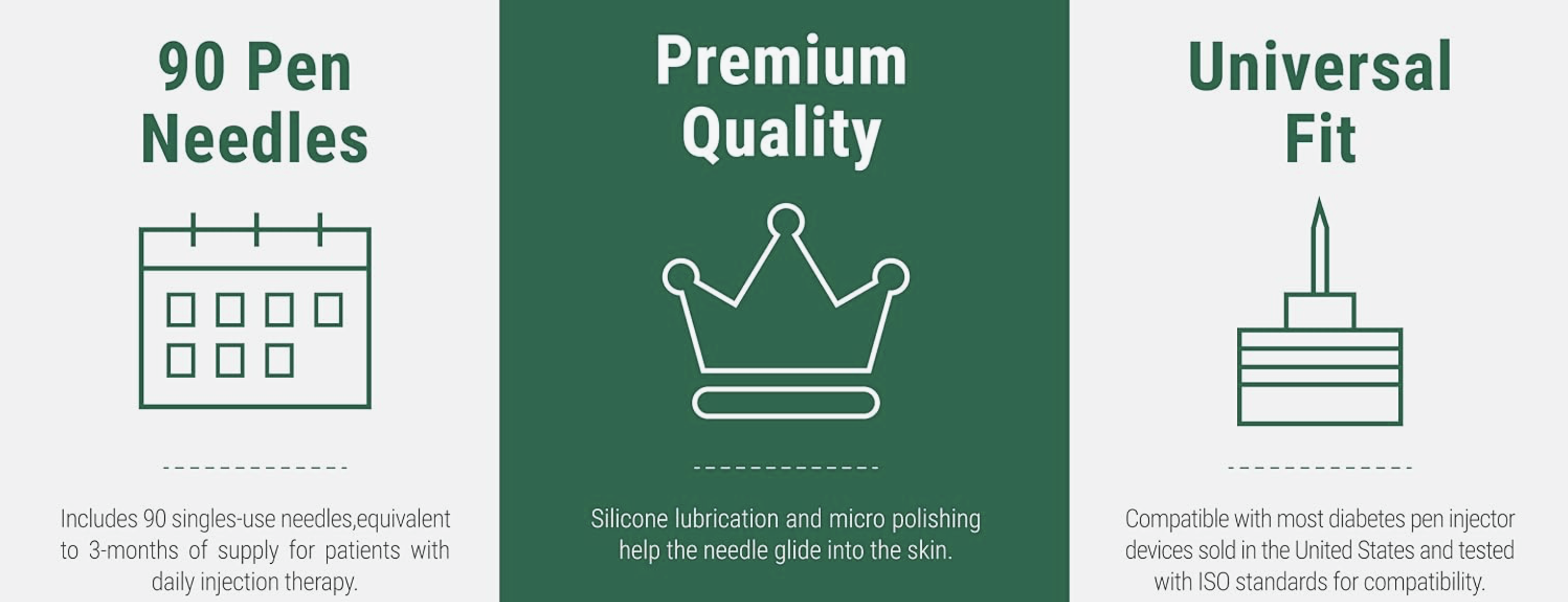 Developed a complete Amazon A+ content strategy to build patient confidence at the digital point of purchase—including product education copy, feature tables, size comparison charts, lifestyle imagery, and instructional graphics demonstrating proper pen needle selection and use. Every content element was designed to address the cash-pay patient's key purchase questions: compatibility, comfort, quality, and value.